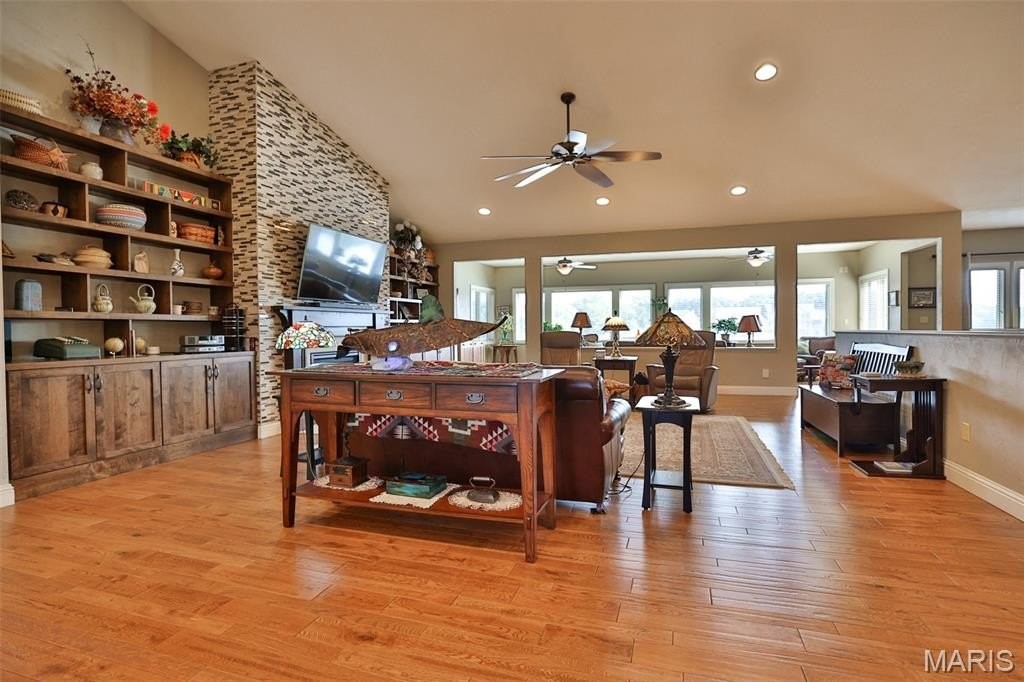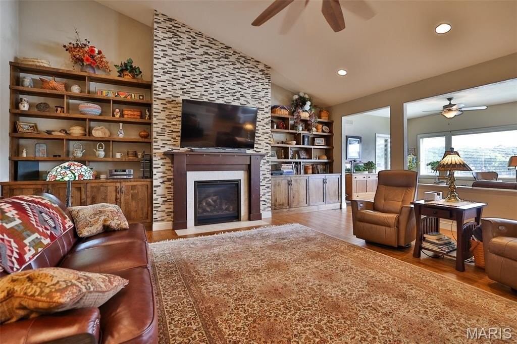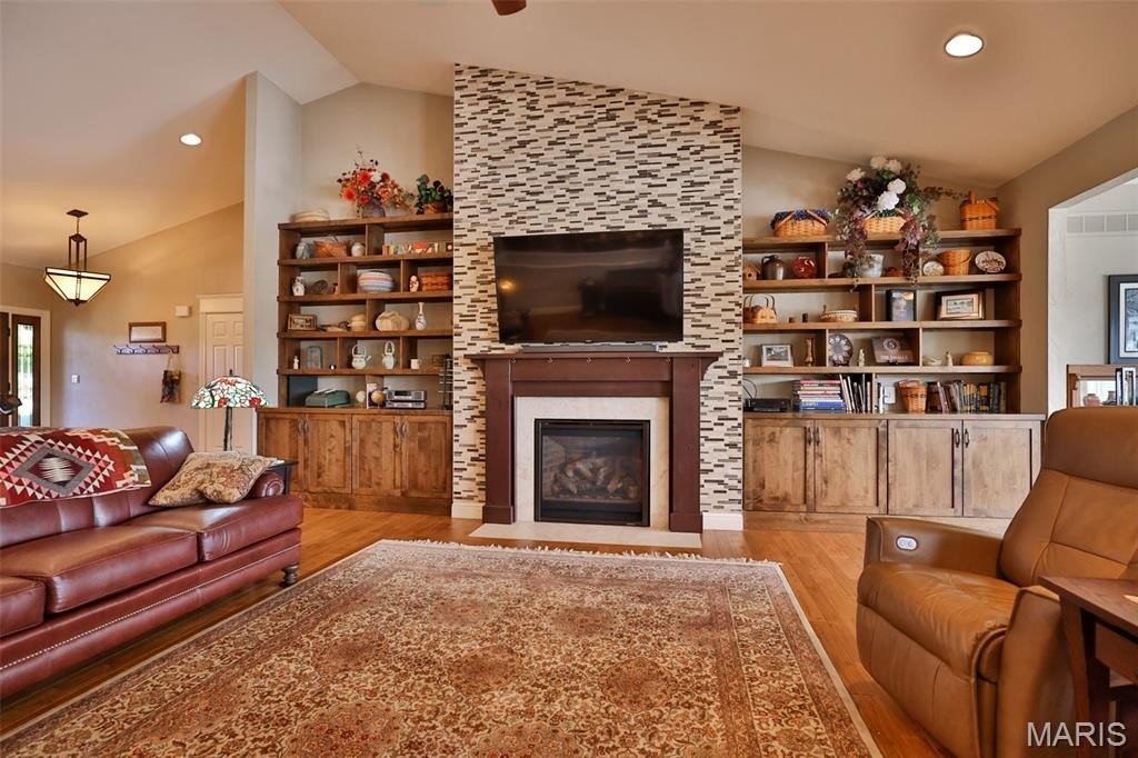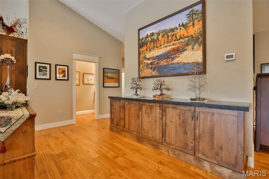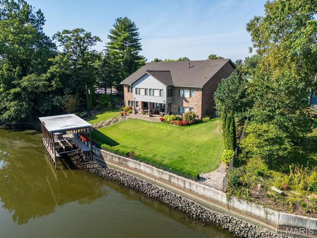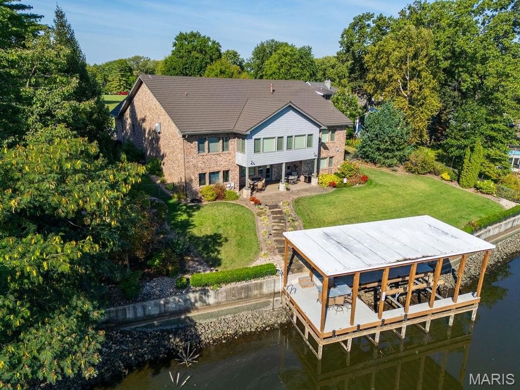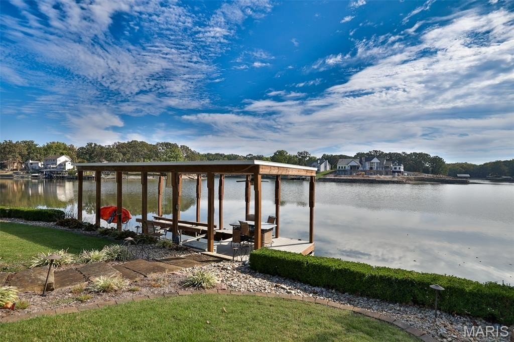Lakeside Luxury Living Where architecture, scenery, and thoughtful design converge this lakefront retreat is a masterpiece of craftsmanship and comfort. With six spacious bedrooms and four baths, the home offers flexibility for every lifestyle. If you dont need all six, one of the upper bedrooms now serves beautifully as a home office adjoining the primary suite, while a lower-level bedroom functions perfectly as a home gym. Inside, youll find an open floor plan with soaring vaulted ceilings, hardwood flooring, and plaster coated walls all enhanced by panoramic views of the main lake from nearly every room. The chefs kitchen is truly remarkable, offering Wolf appliances, Sub-Zero refrigeration, granite countertops, a prep sink, steamer, beverage cooler, and ice maker all surrounded by extensive custom cabinetry and built-in storage throughout. The primary suite is a true retreat, complete with a deep whirlpool tub and steam shower for the ultimate spa experience. Upstairs bedrooms feature double closets, offering generous storage and functionality. On the walkout lower level, youll find a cozy fireplace in the family room, a home theatre with 120 screen, and two versatile bonus areas perfect for recreation, work, or hobbies. Large windows frame the serene lake views, creating an inviting space for relaxation or entertaining. Step outside and discover your private oasis a beautifully landscaped yard leading to 150 feet of pristine lake frontage, a covered dock with boat lift, fenced rear lawn, and convenient access to the beach, pickleball, tennis courts, and playground. Whether hosting family and friends or enjoying a quiet evening by the water, this property redefines lakefront living.